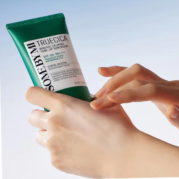 The Some By Mi Truecica Mineral Calming Tone-Up Suncream SPF50+ PA++++ 50ml is a multi-functional sunscreen that combines UV protection, soothing care, and tone-up benefits. Using non-nano mineral filters like zinc oxide and titanium dioxide, this reef-friendly sunscreen minimizes irritation while guarding against UVA and UVB rays. Its lightweight, lotion-like texture glides effortlessly on the skin, providing moisturizing essence (85%) and a natural brightening effect without the chalky, white cast often associated with mineral sunscreens.